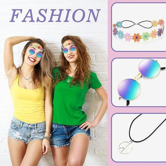 WILLBOND 60s 70s Accessories for Women Hippie Costume Accessories Peace Sign Necklace Headband Hair Wreath Sunglasses