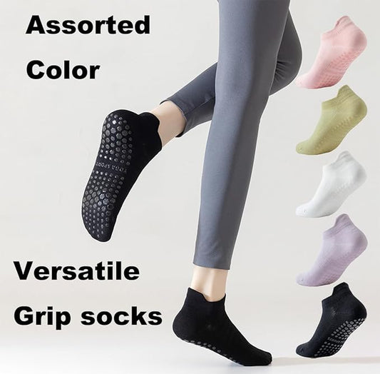 Women's Pilates Grip Socks Seamless Breathable Cotton Yoga Socks Non Slip 5-Pack