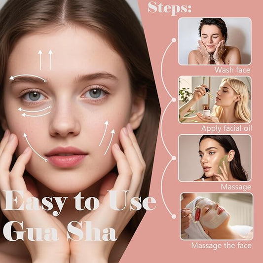 • Wooden Gua Sha Facial Massage Tool and Roller Set, Facial Massager for Face, Neck, Eyes, Reduces Puffiness, Improves Wrinkles, Suitable for Women Care, Great Mother's Day Gift for Mom, Grandma