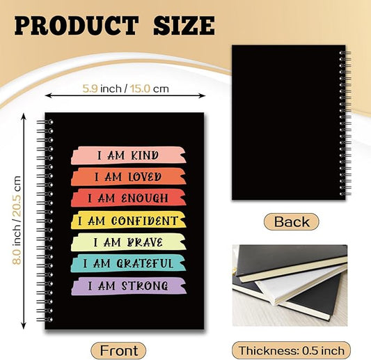 YAZMEEN Inspirational Blank Spiral Notebook(160 Pages) I am Kind I am Loved Hardcover Sketchbook Positive Gifts Funny Motivational Gifts Notebook for Women Men Teen Teacher Student Colleague Friend
