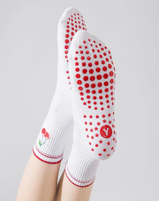 Yawlsow Pilates Grip Socks for Women Yoga Grippy Socks Cute Barre Non Skid Athletic Crew Sticky Sock Workout Hospital