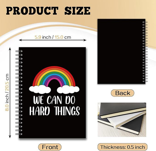 YAZMEEN Inspirational Blank Spiral Notebook(160 Pages) We Can Do Hard Things Hardcover Sketchbook Rainbow Notebook Gift Funny Encouragement Gift for Teacher Student Colleague Team Member Office Work
