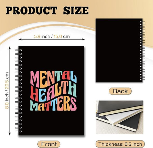 YAZMEEN Motivational Blank Spiral Notebook(160 Pages) Colorful Mental Health Matters Hardcover Sketchbook Mental Health Gifts Funny Notebook Gifts for Office Worker School Counselor Teacher Student
