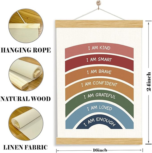 YGSDZY Rainbow Affirmations Wall Art, Wood Poster Hanger, Boho Classroom Decor, Inspirational Decor, Nursery Sun Print, Mental Health Posters, Therapy Wall Art, School Psychology