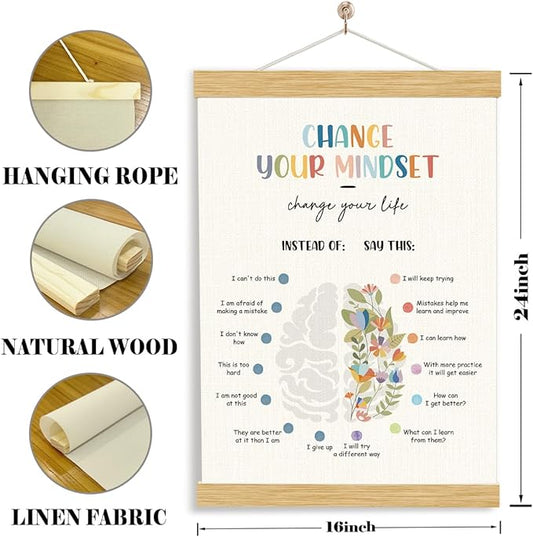 YGSDZY Growth Mindset Poster, Therapy Office Decor, Wood Poster Hanger, Classroom Decor, Mental Health Posters, Therapy Wall Art, School Psychology, Psychotherapy Posters Decoration