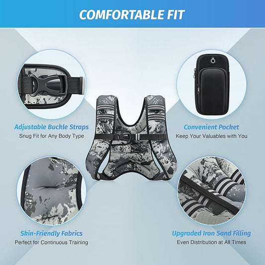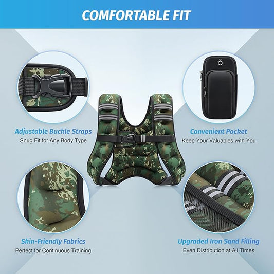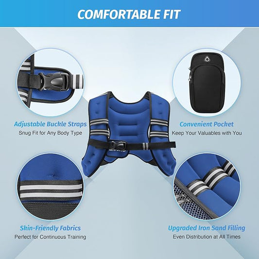 ZELUS Weighted Vest, 6lb/8lb/12lb/16lb/20lb/25lb/30lb Weight Vest with Reflective Stripe for Workout, Strength Training, Running, Fitness, Muscle Building, Weight Loss, Weightlifting