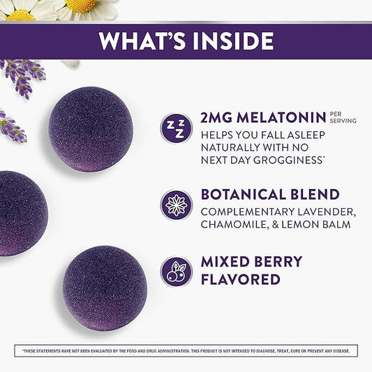 ZzzQuil PURE Zzzs Melatonin Gummies, Sleep Aid, Melatonin 2mg, with Chamomile & Lavender, Melatonin Sleep Gummies, Sleep Aids for Adults, Wildberry Vanilla Flavored, 72 Sleep Gummies