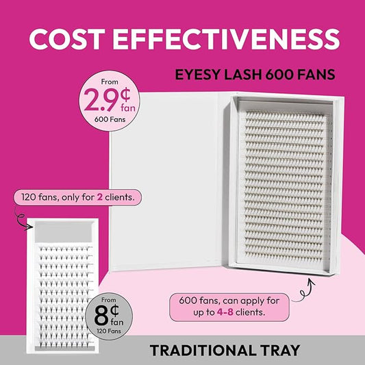 600 Easy Promade Fans - 5D 0.07 Curl D Mixed Lengths 8-16mm - Ultra Speed 20 Lines Eyelash Trays Volume Premade Lash Fans Handmade Pre Made Eyelash Extensions Fluffy Soft Pointy Base