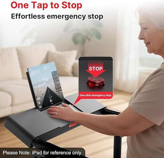 Yesoul Walking Treadmill for Seniors with Long Handrails – 4 Major Safety Protections, Emergency Stop Button, Treadmill for Home 300 lbs Capacity, Recovery Walking Machine with LED Display