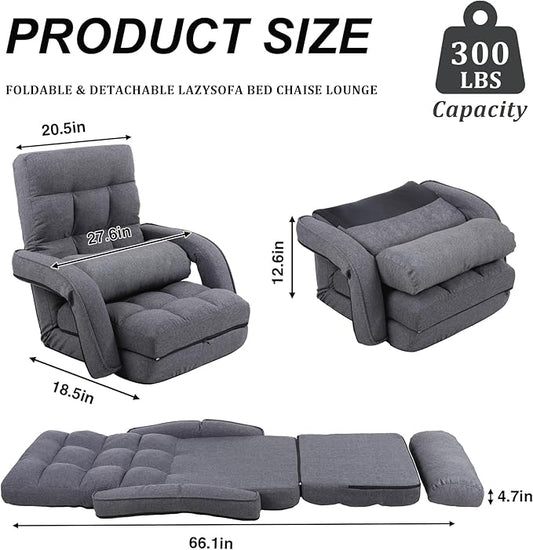 Adjustable Floor Chair for Adults with Back Suppor,5-Position Folding Lazy Sofa with Pillow, Gaming & Meditation Chair with Breathable Fabric - for Living Room, Bedroom, Office,Balcony (Grey)