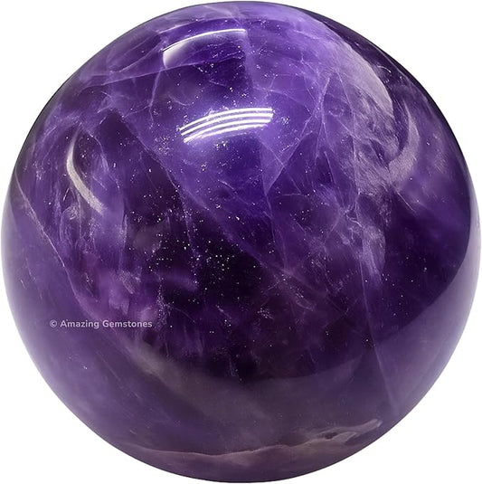 Amazing Gemstone Amethyst Crystal Ball with Stand - 2" Inches Crystal Sphere Meditation Balls for Witchcraft and Decorative Balls