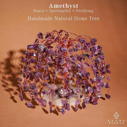 Amethyst Crystal Crystal Tree of Life for Home and Office Decor, Positive Energy, Wealth, Good Luck, Reiki Healing, Handmade Feng Shui Decoration, Birthday Gifts for Women, Mom