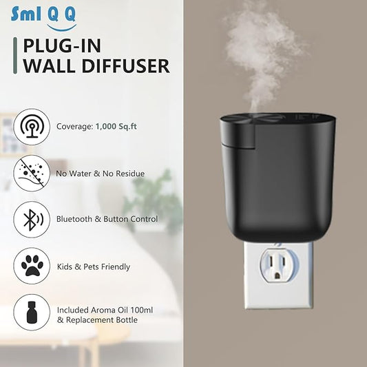 Plug-in Waterless Diffuser, Mini Home Fragrance Wall Diffuser for Large Room, Covers up to 1,000 Sq.Ft. Portable Difffuser Aromatherapy Set- Included 100ml Oil and Replacement Bottle -Black