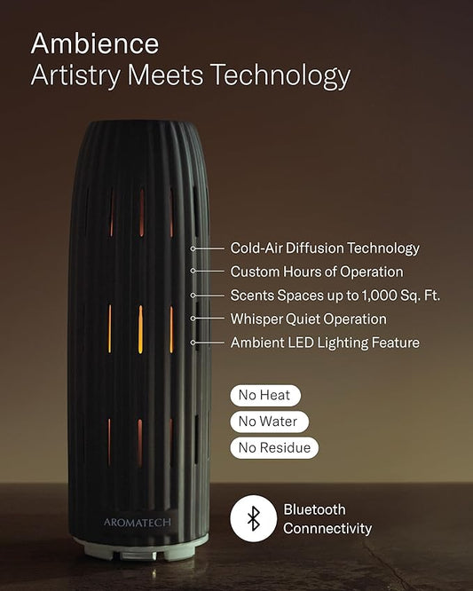 AromaTech Ambience Scent Diffuser for Essential Oil Blends & Fragrances – Waterless Scent Machine w/Bluetooth for Home, Bathroom Boutiques, Hotel, Spa – Charcoal