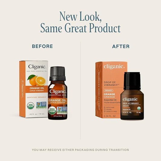 Cliganic Organic Sweet Orange Essential Oil, 10ml - 100% Pure Natural for Aromatherapy Diffuser | Non-GMO Verified (Packaging May Vary)