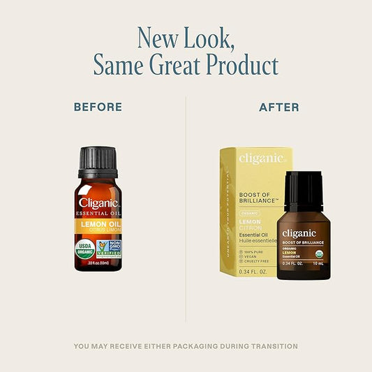 Cliganic USDA Organic Lemon Essential Oil, 100% Pure & Natural | Undiluted, for Aromatherapy, Household Cleaning | Non-GMO Verified (Packaging May Vary)