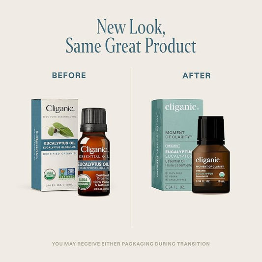 Cliganic Organic Eucalyptus Essential Oil - 100% Pure Natural for Aromatherapy Diffuser | Non-GMO Verified (Packaging May Vary)