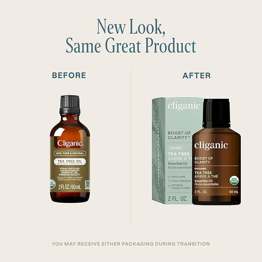 Cliganic Organic Tea Tree Essential Oil - 100% Pure Natural for Aromatherapy Diffuser | Non-GMO Verified (Packaging May Vary)
