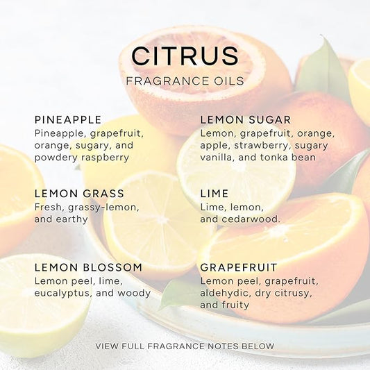 Eternal Essence Oils Citrus Set of 6 Premium Fragrance Oils - Lemon Grass, Blossom, Sugar, Lime, Grapefruit, and Pineapple - for Diffusers, Candle & Soap Making, & Aromatherapy - 10ML