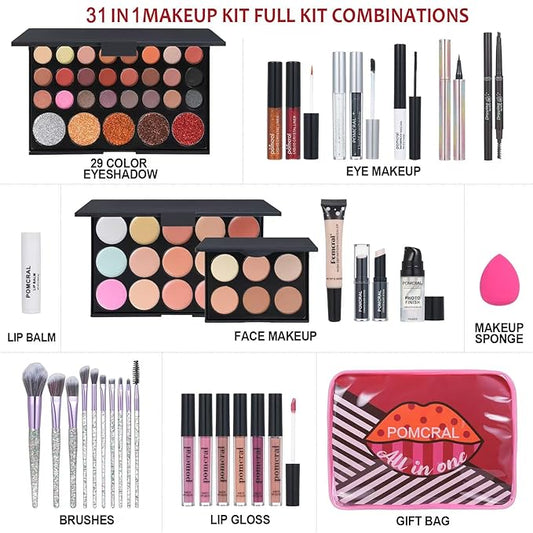 Makeup Kit For Women Full Kit Eyeshadow Eyeliner lipgloss, Lipstick Makeup brushes Mascara Eyebrow pencil Concealer Face Powder Primer make up Set For Girls Beginners