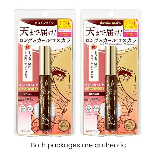 HEROINE MAKE by KISSME Brown Mascara Waterproof, Waterproof Mascara Volume and Length by Tubing Fiber for Long & Curl Eye Makeup for Women, Natural Lash Look for Sensitive Skin from Japan 2 EA