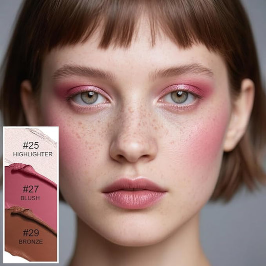 3Pcs Contour Stick Makeup Set, Shades with Highlighter Blush Bronzer Stick Kit for Sculpt the Cheeks and All Skin Type, Longwear Smooth Non-greasy Formula for All Skin Types, Mature