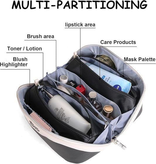 BOYATU Travel Makeup Bag Organizer Cosmetic Bag: 3 Pcs Set Make up Bags for Women with Handle - Waterproof Vegan Leather Toiletry Bags Travel Essentials Pouch with Compartments (F-01-Black)