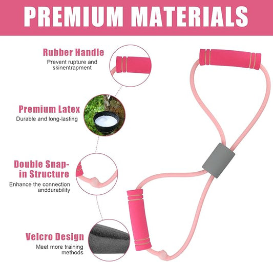 Saludea Resistance Band, 2 PCS with Handles Figure 8 Resistance Band, Yoga Gym Fitness Pulling Rope for Full Body Workout Arms Shoulders Back Legs and Buttocks (Pink)