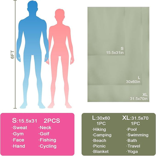 Camping Towel L Size Quick Dry Microfiber Lightweight for Beach Swimming Pool Travel Body Towels (Army Green, 1 Pack L)