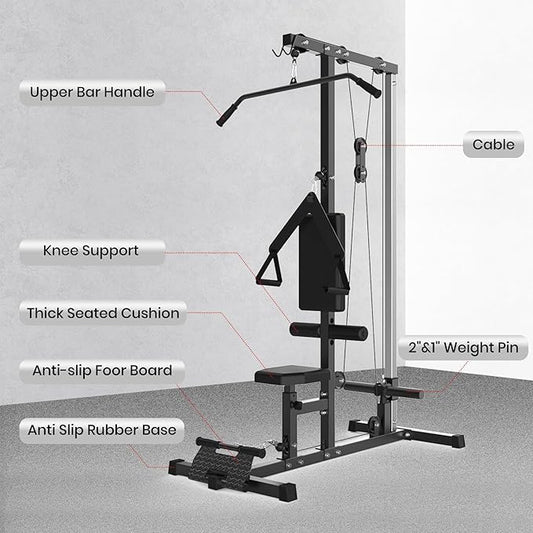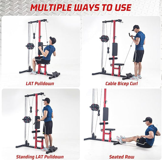 LAT Pulldown Machine, Multi-Functional Cable Machine with High and Low Pulley Station, Row Cable Machine Home Gym with Leg Support, Tricep Workout Equipment