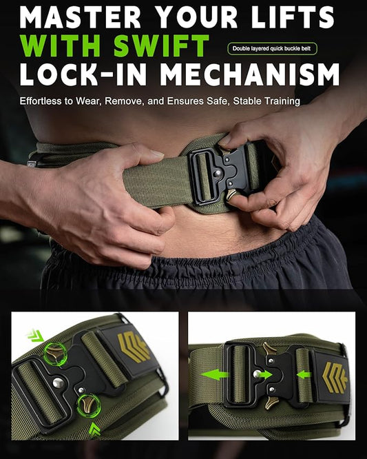 MANUEKLEAR Weight Lifting Belts for Men and Women, Gym Weight Belt with Carabiner Quick Locking, Double-Layer Weightlifting Belt for Workout Squat Powerlifting Deadlift