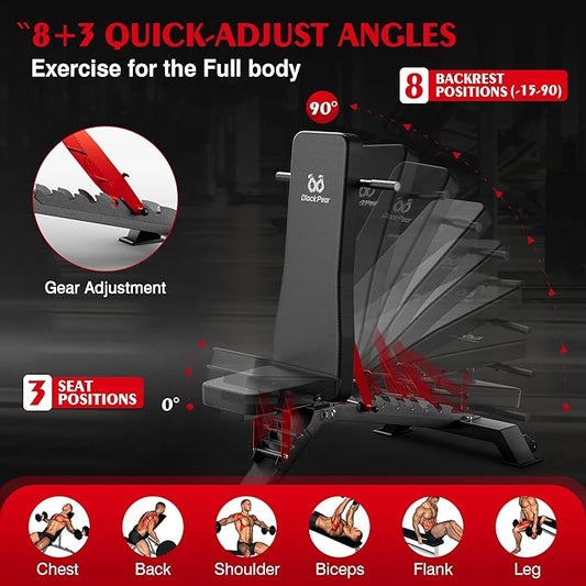 BARWING Adjustable Weight Bench Workout Bench, 1000 LB Heavy Duty Incline Decline Bench for Home Gym, Easy Assembly Foldable Training Lifting Bench, Ultra Short Gap 2025 New Version
