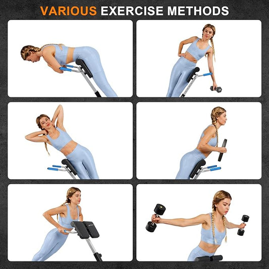 Roman Chair,Foldable Back Extension Machine,Adjustable Ab Back Extension Machine,Core Strength Trainer,Back Exercise Machine for Glute,Ab Workouts,Full All-in-One Body Workout&Home Gym Fitness