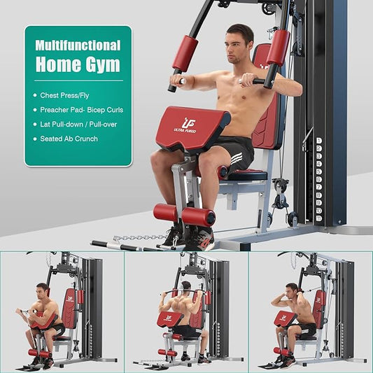 Multifunctional Home Gym Equipment Workout Station with Pulley System, Arm, and Leg Developer for Full Body Training