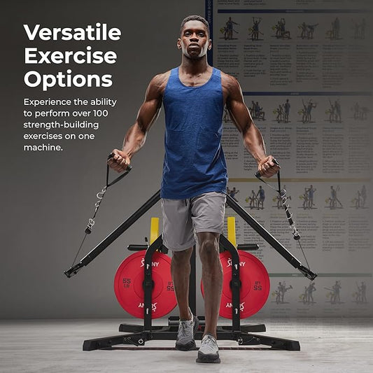Sunny Health & Fitness Multifunctional Strength Training Home Gym – Complete Workout Equipment with Training Attachments, Optional Squat Stand, Power Rack Cage, Adjustable Incline Bench