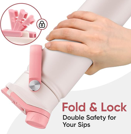 24 oz Insulated Water Bottle, 2-in-1 Lid, Straw & Spout with Protected, Leak Proof, Keep Cold, Stainless Steel, Metal, Reusable, Handle, for Travel, Gym and School, 2 Lids, Pale Pink