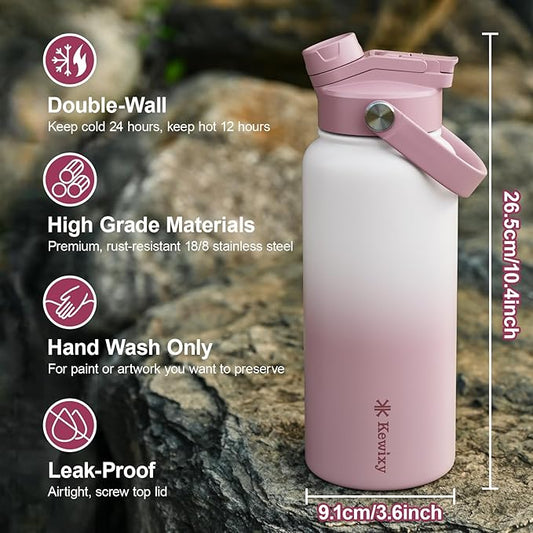 32oz Insulated Water Bottle,Stainless Steel Vacuum Water Bottle, BPA-Free & Leakproof -with Paracord Handle,Strap,Straw Spout Lids, Water Jug for Gym Sports,Christmas Gifts for Women
