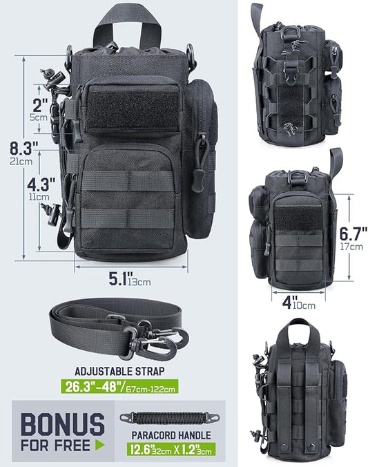 64 oz Insulated Water Bottle with Sleeve, Half Gallon Stainless Steel Tactical Water Jug Large Military Water Bottle with 3-IN-1 Pouch/3 Lids/Straw/Paracord Handle for Gym, Camping, Workout