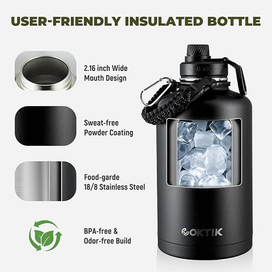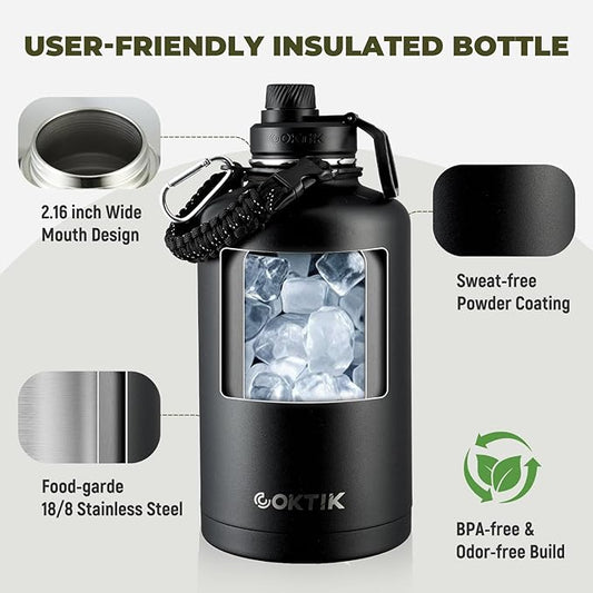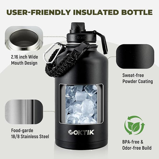 COKTIK 64oz Half Gallon Water Bottle - Triple Insulated Stainless Steel Flask, 48hr Cold Retention, Leakproof & BPA-Free, Large Water Jug for Gym, Hiking, Camping, Outdoor Sports (Midnight)