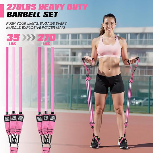 Pilates Equipment, Portable Pilates Bar Kit with Resistance Bands, Professional Adjustable Heavy Duty Squat Workout Equipment for Men, Home Gym Muscle Strength Training, Full Body Exercise
