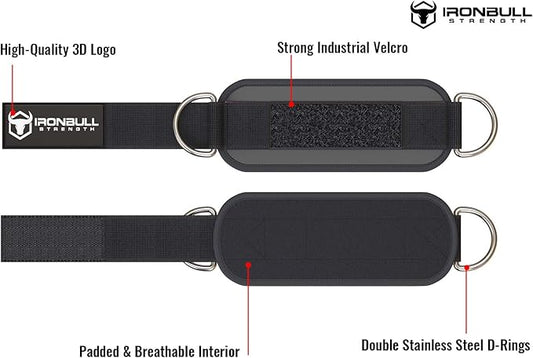 Iron Bull Strength Ankle Straps for Cable Machines (Pair) - Double D-Ring Attachment, Fully Adjustable, Breathable Comfort Neoprene - for Legs, Glutes, Abs and HIPS Workouts - Fits Women & Men
