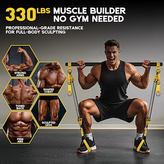 Pilates Bar Kit with Resistance Bands, Heavy Duty Pilates Equipment for Men, Strength Training Bar for Legs, Hip, Back, Arm, Abs, Chest, Shoulders, Portable Home Gym Full Body Workout Equipment