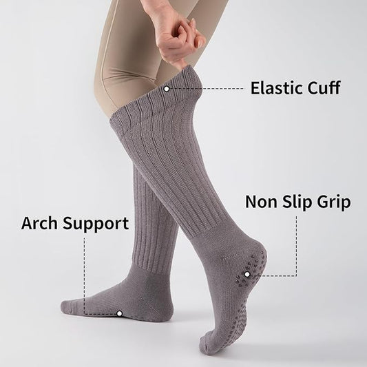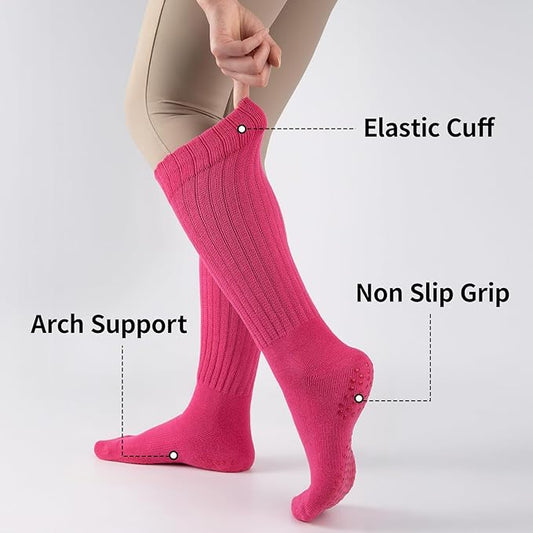 COOVAN Grip Pilates Socks for Women 3 Pairs Yoga Slouch Crew Long Scrunch Slipper Socks for Barre Ballet Dance Hospital