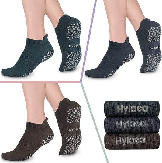 Hylaea Unisex Non Slip Socks with Grip for Yoga, Hospital, Pilates, Barre | Ankle, Cushioned