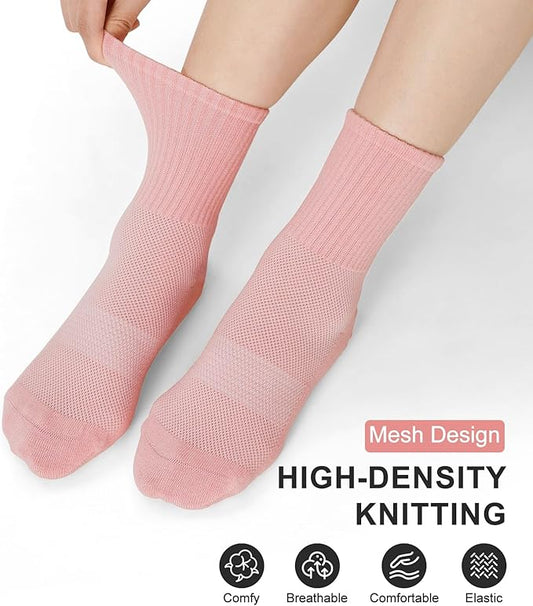 Breslatte Crew Pilates Socks with Grips for Women Non Slip Cotton Grip Socks for Yoga Hospital Barre Home Daily