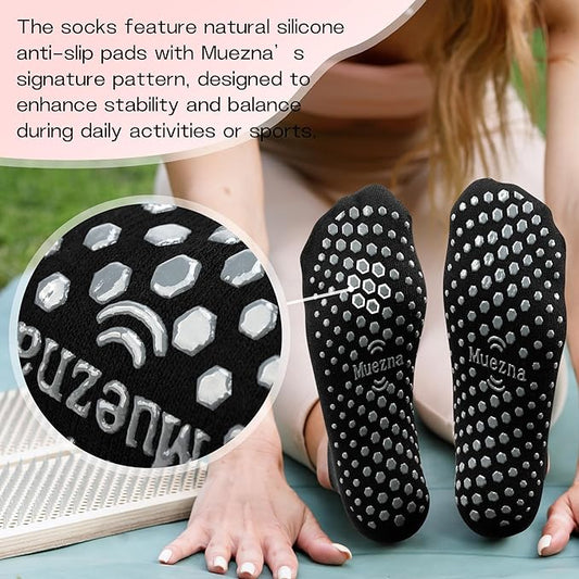 Muezna 6 Pairs Pilates Grip Socks for Women, Non Slip Yoga Socks with Grips, Grippy Socks for Barre, and Hospital