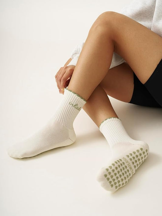 Crew Half Calf Grip Socks, Cutest Fruits Pilates Socks, Ruffle socks, Non-Slip, Barre Yoga Fitness