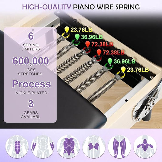 Pilates Reformer, Maple Wooden Foldable Pilates Reformer Machine with 6 Springs,Sitting Box, Padded Jump Board, 660lbs Capacity for Home Workouts Studio Yoga