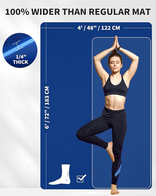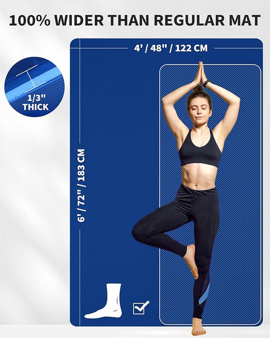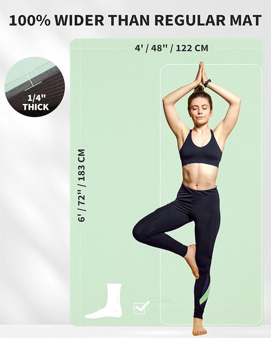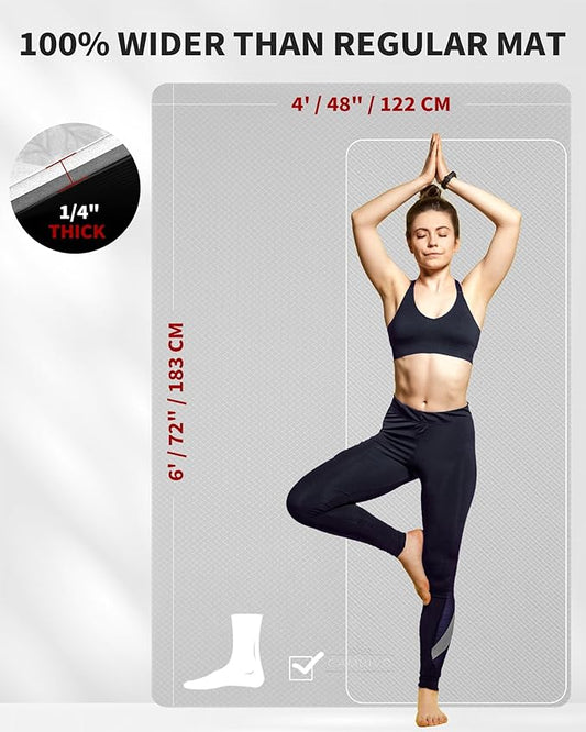CAMBIVO Large Yoga Mat (6'x 4'), Extra Wide Workout Mat for Men and Women, Yoga Mat Thick 1/3 &1/4 Exercise Mats for Home Workout, Yoga, Pilates (Black,1/4 inch)