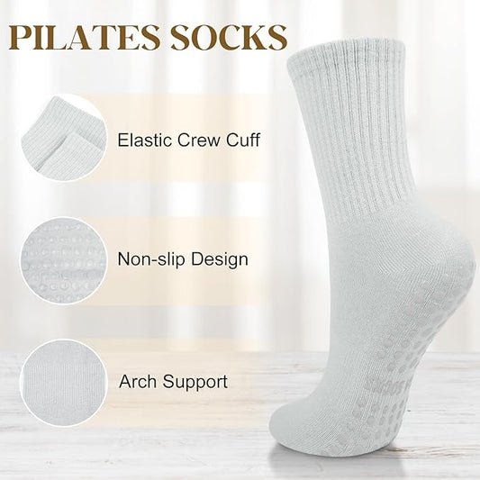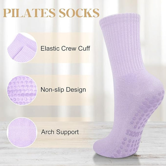 Justay 6 Pairs Pilates Socks with Grips for Women Soft Non Slip Crew Cotton Athletic Workout Barre Hospital Yoga Socks